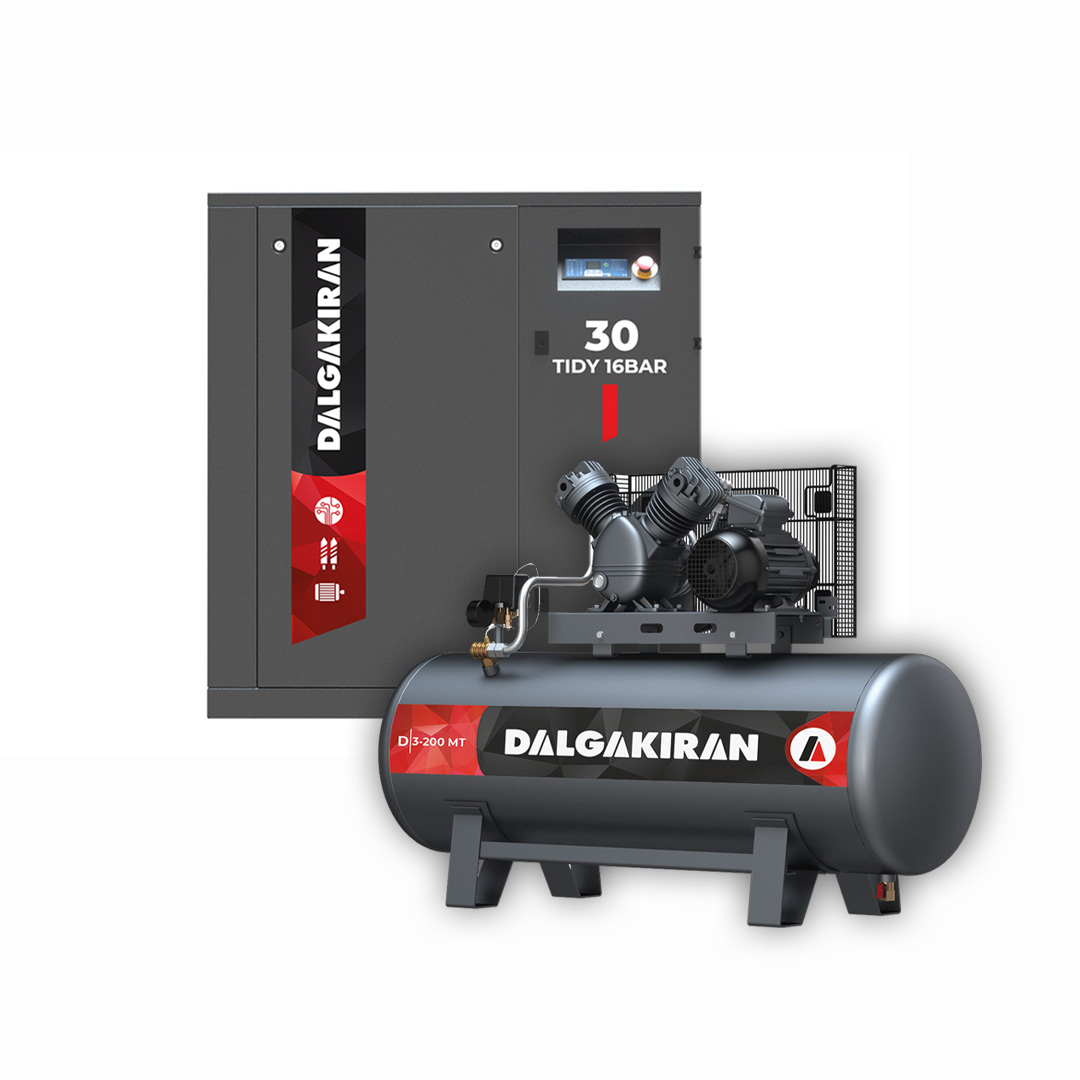 - Entegre ekipmanlar: Aftercooler, hava kurutucu, filtre ve kondens tahliye çözümleri ile temiz ve kuru hava.